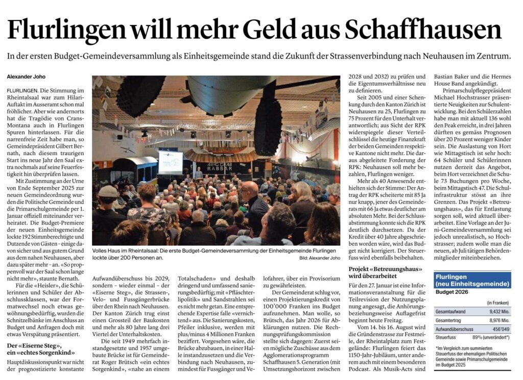 2026 Start in die neue Einheitsgemeinde 18.01.202631.01.2026 Die Schaffhauser Nachrichten berichteten über unsere Hilari-Gemeindeversammlung. Danke für die Berichterstattung. Die Schaffhauser Nachrichten freuen sich übrigens über alle neue Abonnenten …