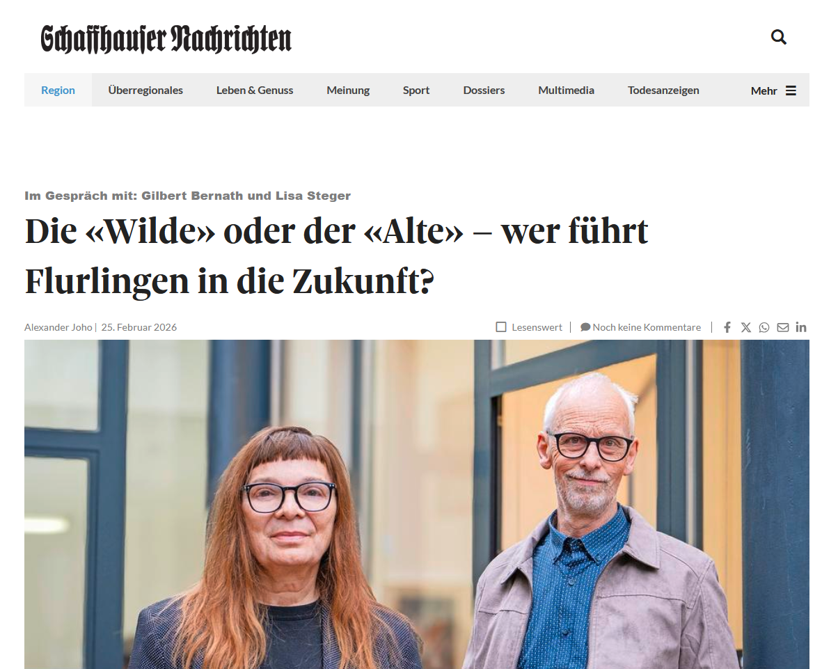 Wie die Schaffhauser Nachrichten am 22.1.2026, berichteten gibt es zwei neue, wilde Kandidaturen für die Behördenwahl am 8. März in Flurlingen. Es wird sich daher die Situation ergeben, dass du […]